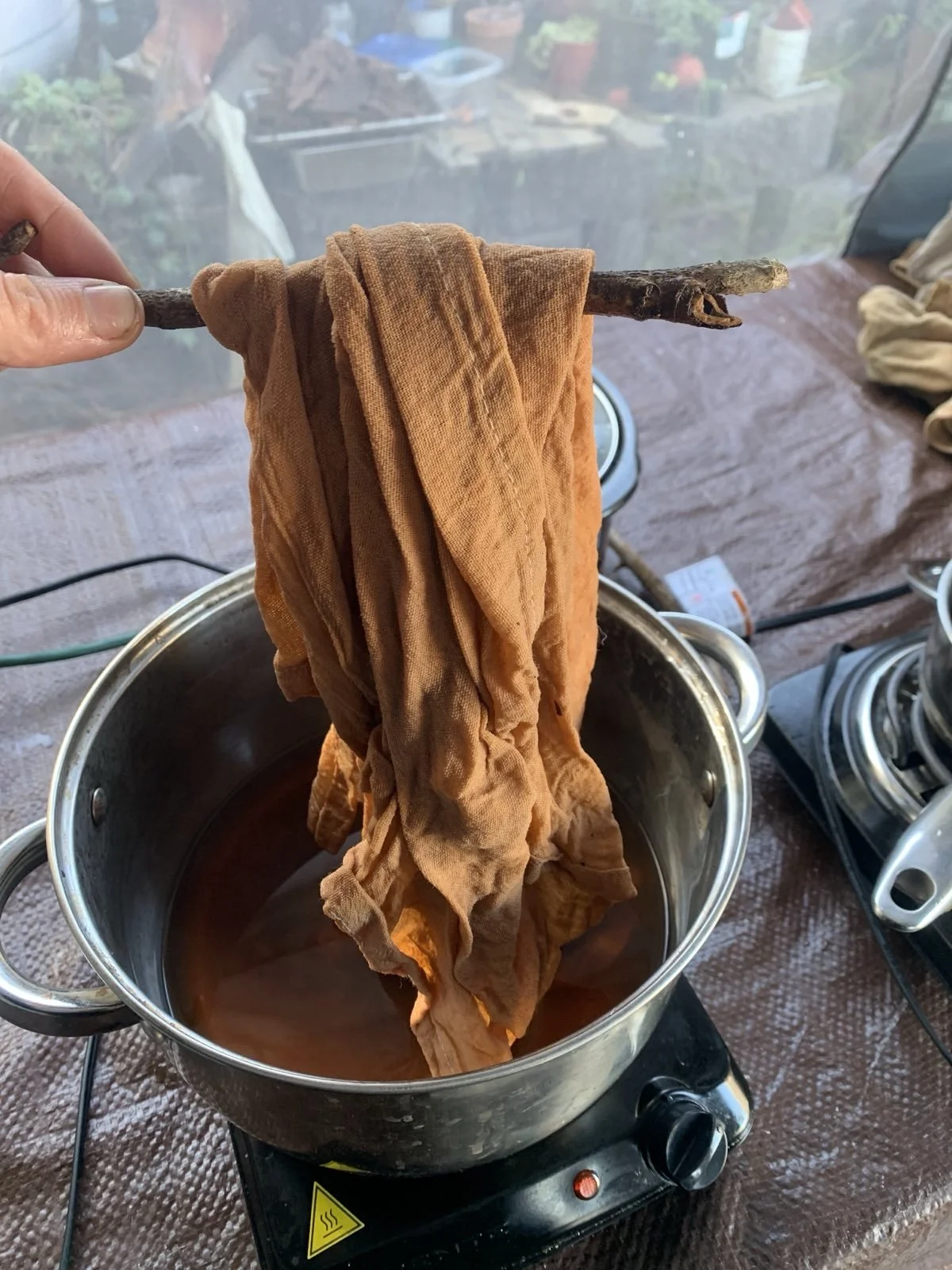 If using a pot on a stove top, allow the dye bath to come to a simmer; avoiding boiling, as it will degrade the color. Let it sit overnight.